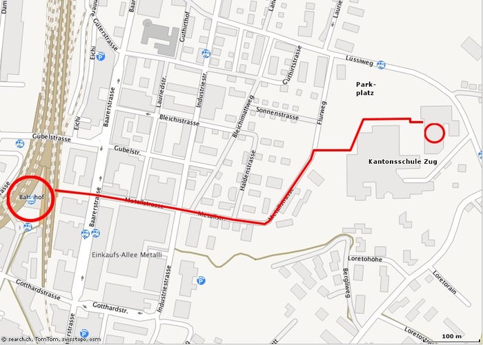 Bahnhof Zug bis Singsaal Kantonsschule Zug ca 10 Min. Fussmarsch